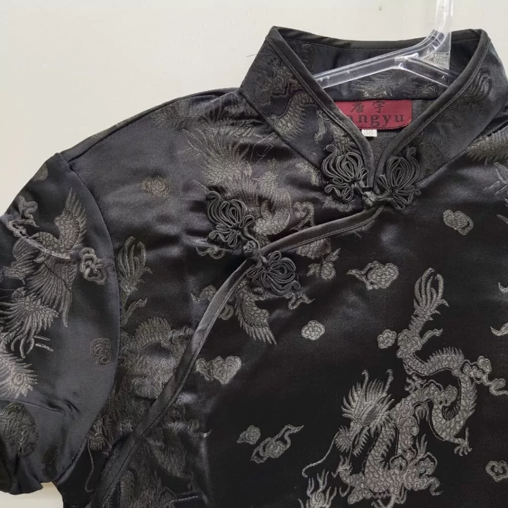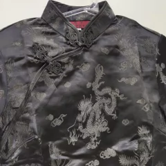 Blusa oriental com estampa tradicional de dragão e fênix.