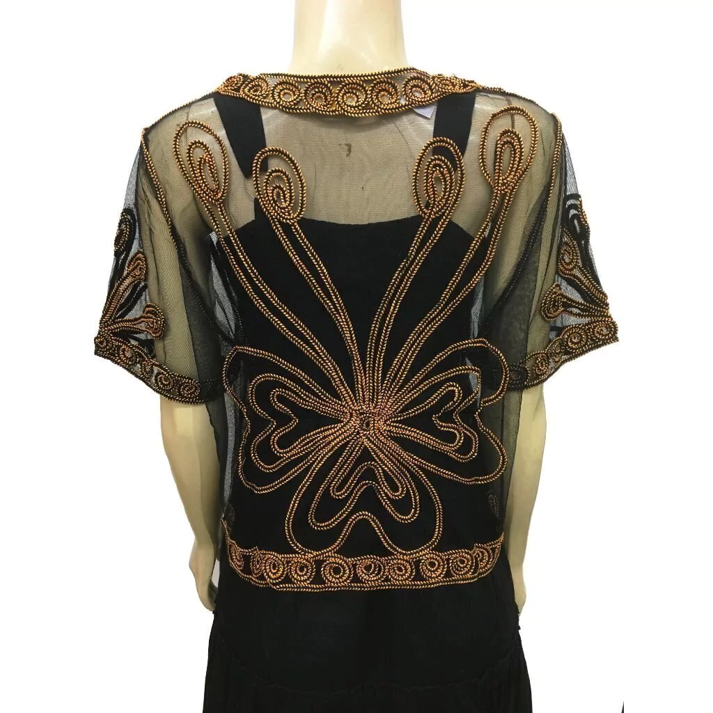 Bolero de tule com aplicação bordada, ideal para complementar blusas e vestidos mais decotados.