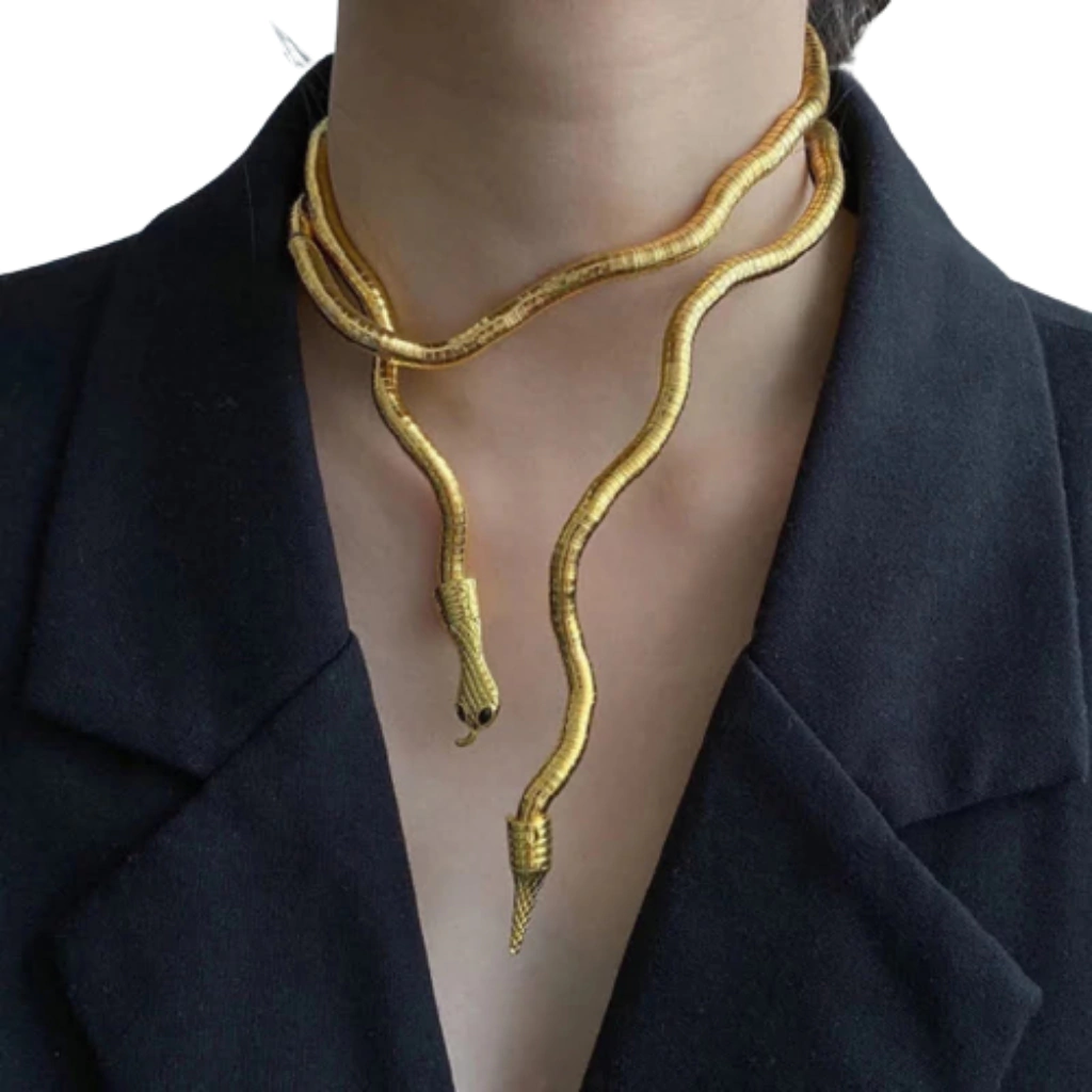 Lindo colar em formato de cobra, corpo todo em metal flexível e moldável, pode ser usado longo ou dando 2 voltas no pescoço, e até como pulseira, adereço de cabeça, basta usar a imaginação!