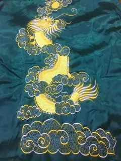 Disponível nas cores azul, verde e vinho com o bordado em dourado, e interior em preto e bordado em vermelho em todos eles.