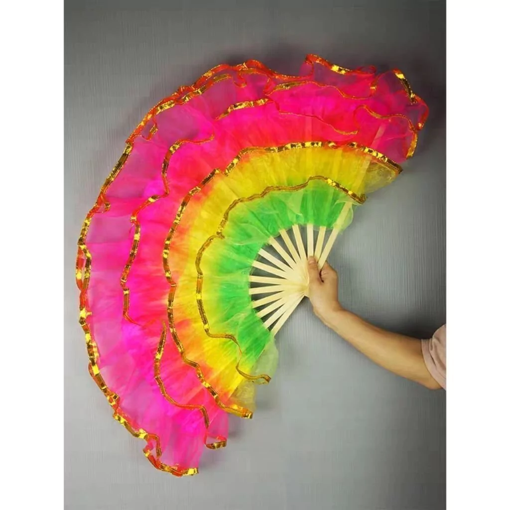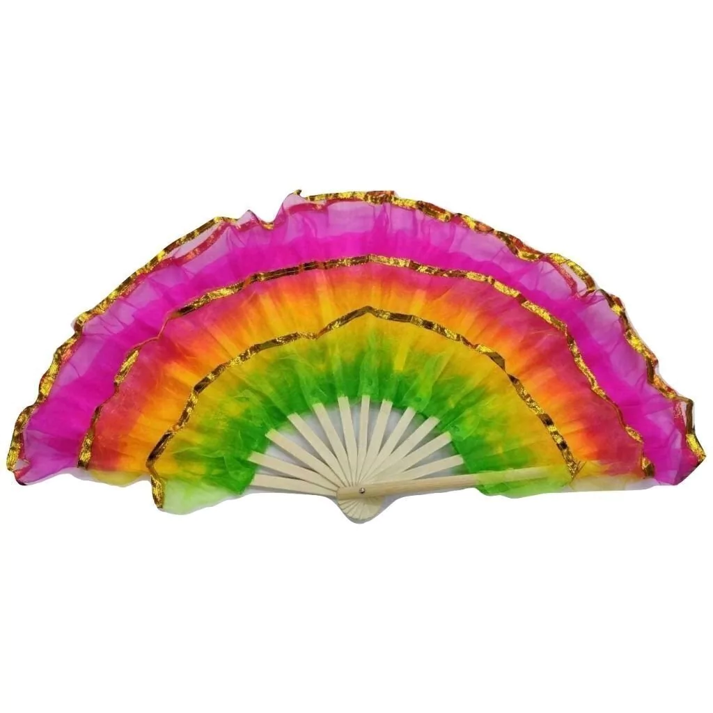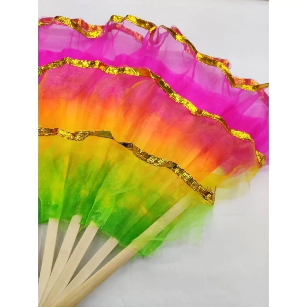Leque de babados em organza colorida, ótimo para apresentações de dança, composições de fantasia, etc.