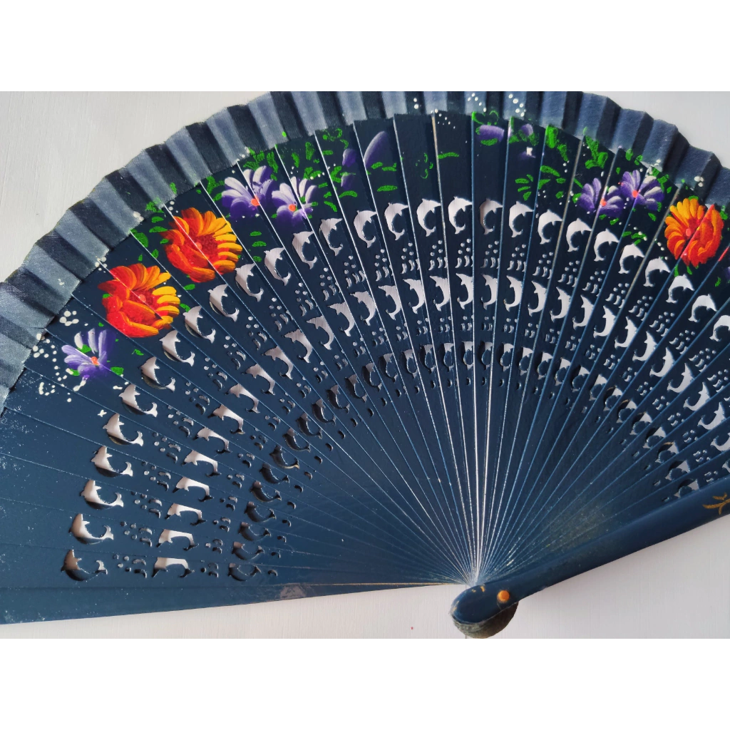 Leque de Madeira Azul Escuro