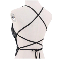 Blusa estilo frente-única em formato de borboleta, todo bordado em paetês e detalhes em miçangas.