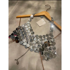 Top modelo tipo biquíni, feito de acrílico espelhado com formato redondo.