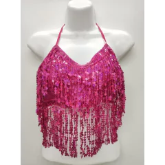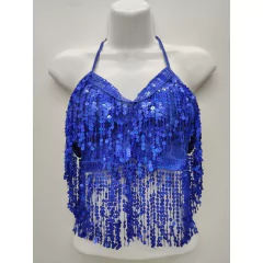 Top todo bordado em franjas de paetês, modelo frente-única.