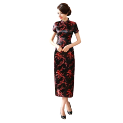 Lindo vestido oriental com delicada estampa de flor de cerejeira.